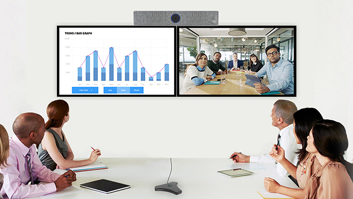 Ha installato una videocamera con un sensore di immagine 4K ultra-HD e 108 ° di campo visivo, più la tecnologia avanzata delle telecamere PTZ (Pan, Tilt, Zoom), che consente di presentare in modo chiaro a tutti i presenti in sala conferenze ed in remoto.